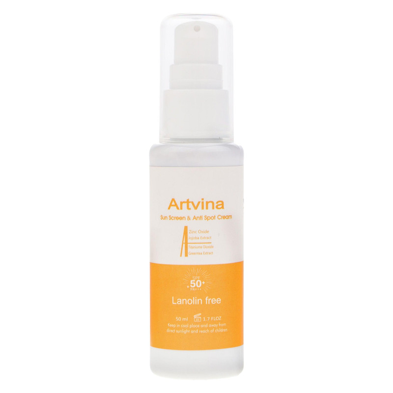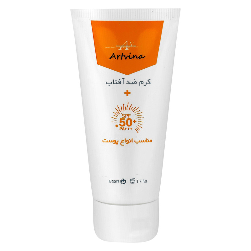 کرم ضد آفتاب بیرنگ صورت آرت وینا SPF 50 مدل Lanolin Free محافظ +++PA مناسب برای انواع پوست حجم 50 میلیلیتر