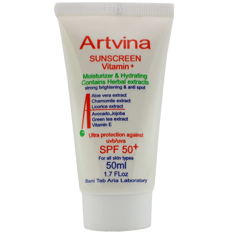 کرم ضد آفتاب بیرنگ آرت وینا، SPF50، مدل vitamin، مناسب انواع پوست با حجم 50 میلیلیتر، محافظتکننده در برابر اشعههای UVA و PA ،UVB+++، ضد چروک و روشنکننده، با ماندگاری 2 ساعته