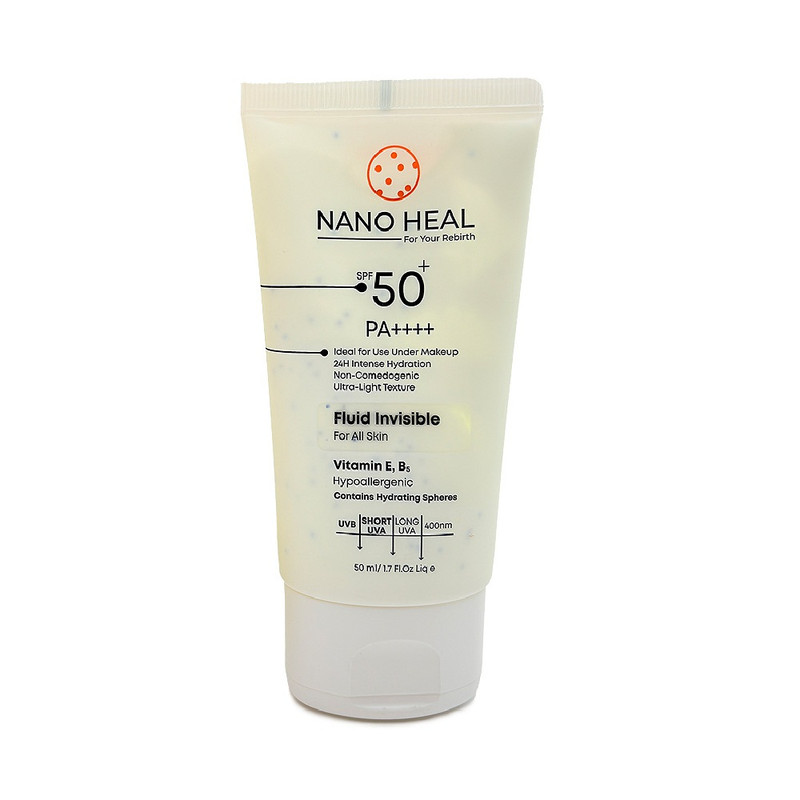 فلوئید ضد آفتاب نانوهیل SPF 50 مدل 001 محافظ UVA ،UVB مناسب برای انواع پوست حجم 50 میلیلیتر