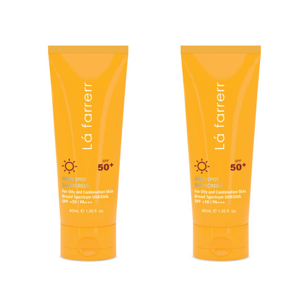 کرم ضد آفتاب بی رنگ لافارر SPF50 مدل 50 مناسب پوست های چرب حجم 40 میلی لیتر مجموعه 2 عددی