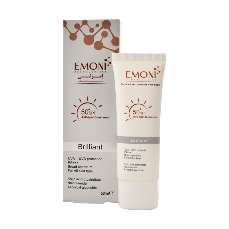 کرم ضد آفتاب بدون رنگ امونی spf50 مدل brilliant مناسب انواع پوست حجم 50 میلیلیتر
