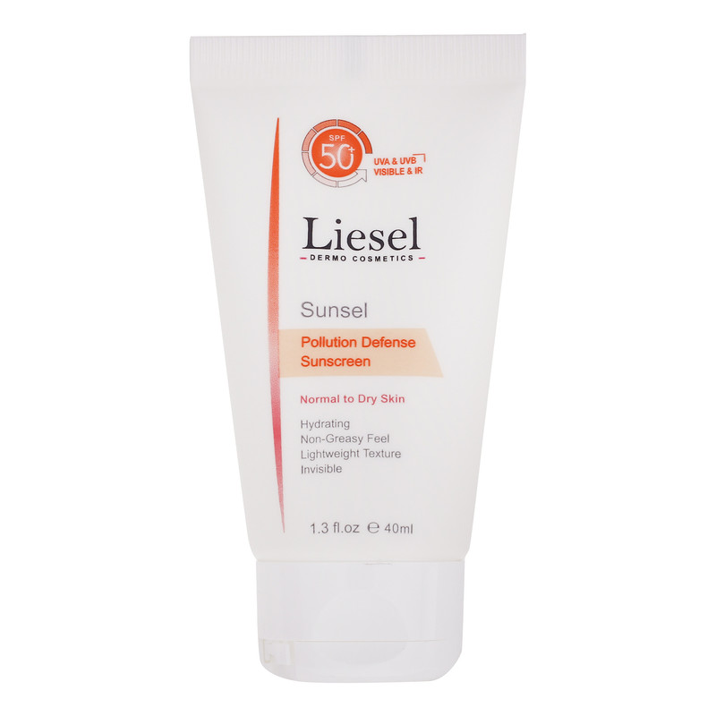 کرم ضد آفتاب بدون رنگ لایسل SPF 50 مدل Pollution Defense مناسب پوست های خشک و معمولی حجم 40 میلیلیتر