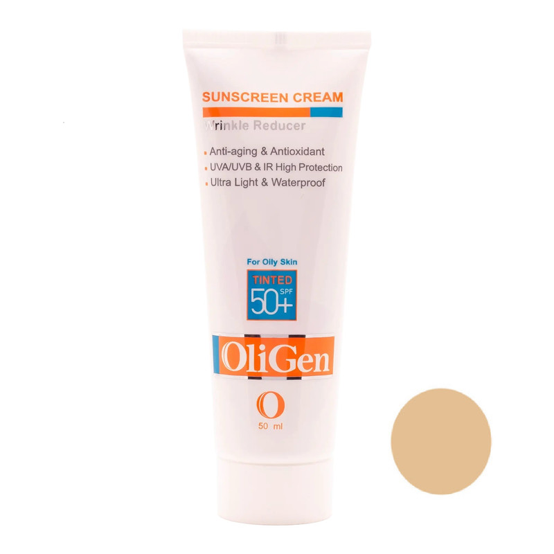 کرم ضد آفتاب رنگی الی ژن SPF 50 مدل L_T_O مناسب پوستهای چرب حجم 50 میلیلیتر