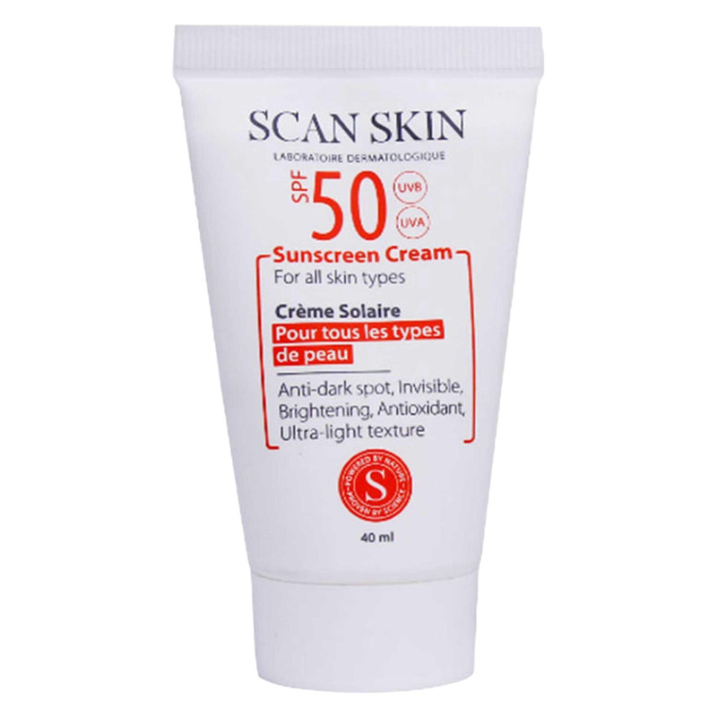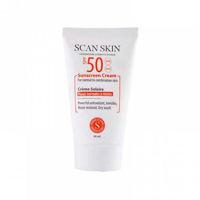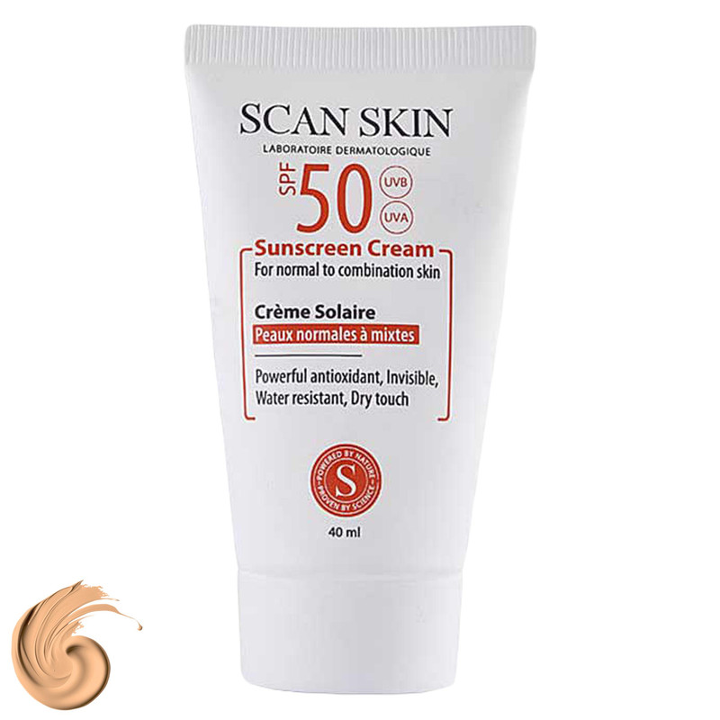 کرم ضدآفتاب بیرنگ اسکن اسکین مدل SPF50، مناسب پوستهای معمولی و مختلط، حجم 40 میلیلیتر