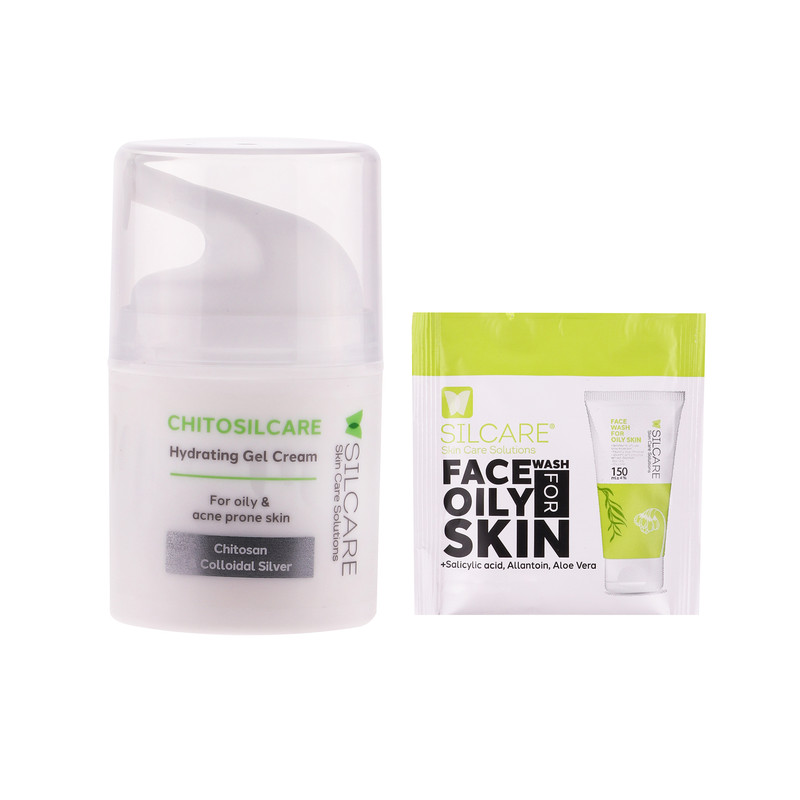 کرم ژل سیلکِر مدل Chitosil حجم 50 میلی لیتر به همراه مایع شستشو صورت مناسب برای پوست چرب و آکنه ای
