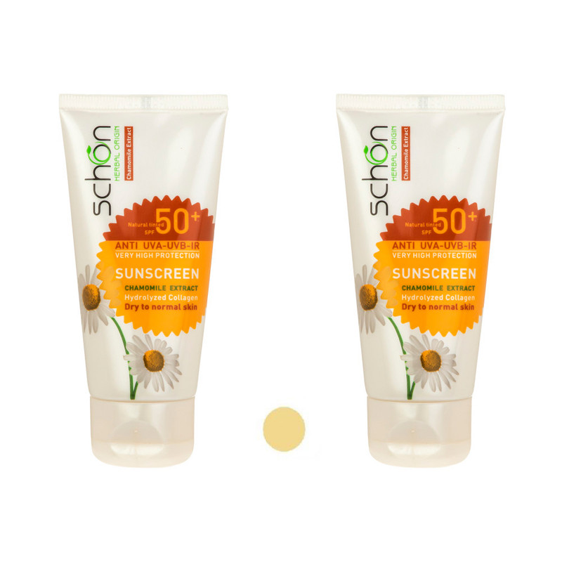 کرم ضد آفتاب رنگی شون SPF 50 مدل Chamomile Extract مناسب پوست های خشک حجم 50 میلی لیتر