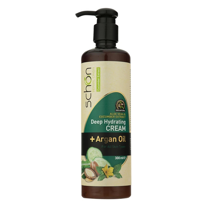 کرم مرطوبکننده شون، مدل Cucumber، مناسب انواع پوست، با عصاره خیار، حاوی روغن آرگان، مناسب استفاده برای دست و صورت، حجم 300 میلیلیتر