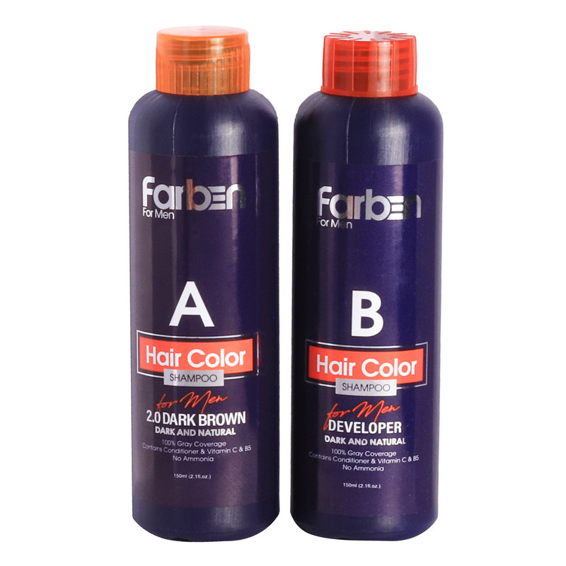 شامپو رنگ مو فاربن شماره 2.0 حجم 150 میلی لیتر رنگ قهوه ای تیره بسته 2 عددی