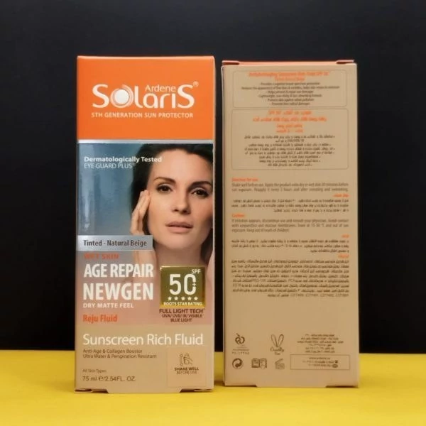 فلوئید ضد آفتاب و ضد چروک رنگی اردن سولاریس SPF 50 مدل بژ طبیعی 75 میلی لیتر