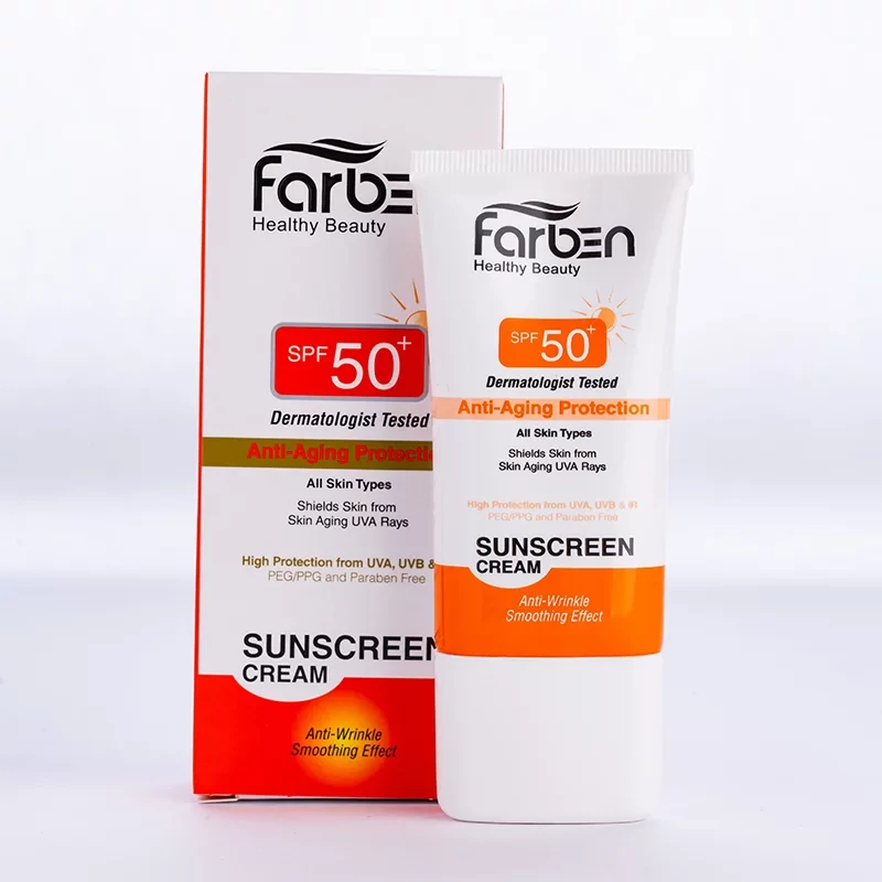 کرم ضد آفتاب رنگی ضد چروک فاربن بژ روشن spf 50 مناسب انواع پوست حجم 50 میل