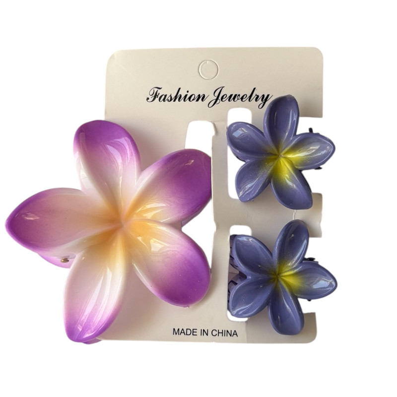 کلیپس مو زنانه مدل گل پلومیریا بسته 3 عددی