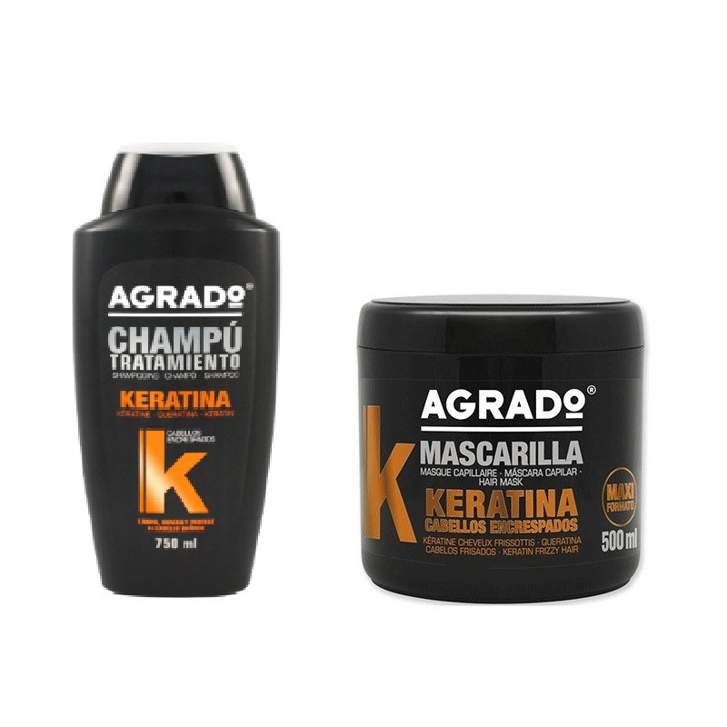 ماسک مو آگرادو مدل Keratina حجم 500 میلی لیتر به همراه شامپو مو مدل Keratin حجم 400 میلی لیتر
