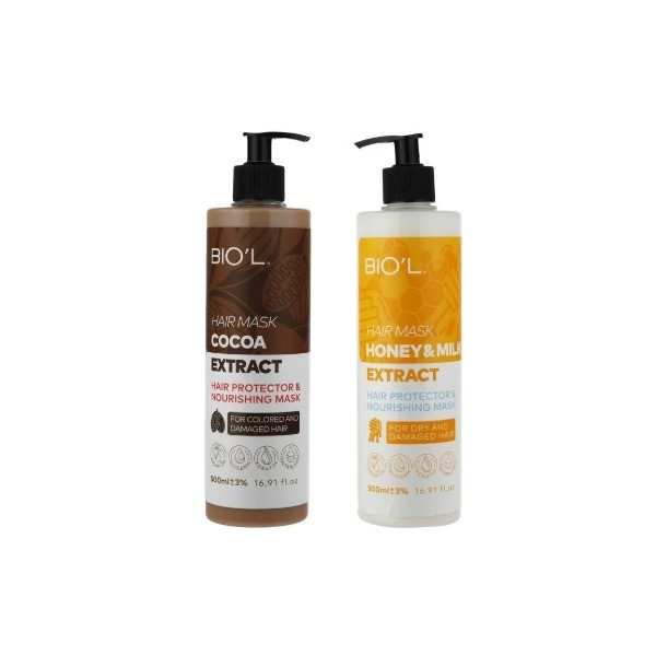 ماسک مو بیول مدل کاکائو_شیر و عسل مناسب برای موهای خشک و آسیب دیده حجم 500 میلی لیتر