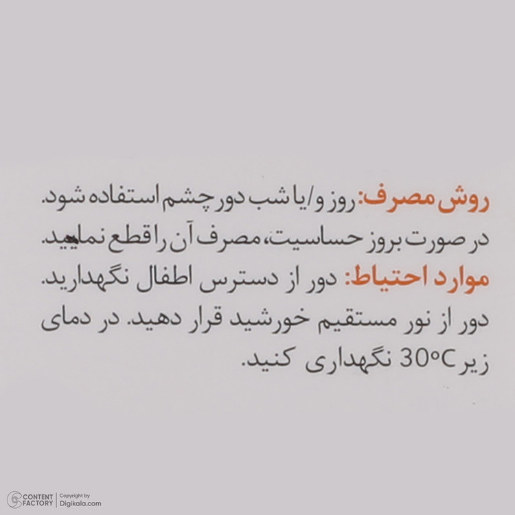 سایر مشخصات: کرم دور چشم اسکین وان غیرکمدون زا است.