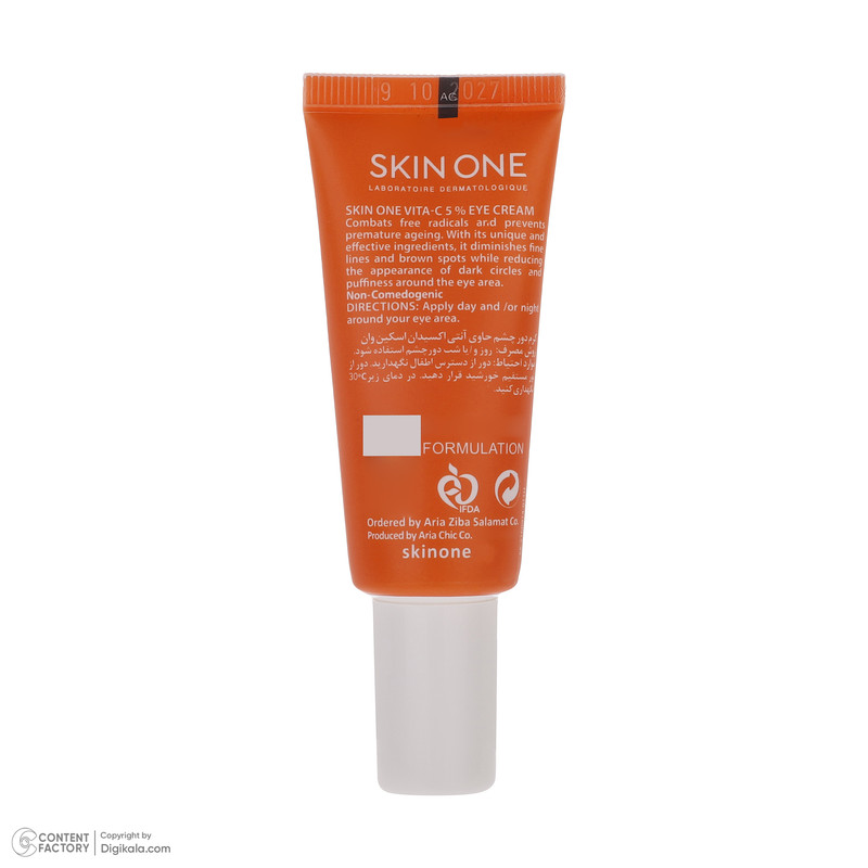 از کرم دور چشم ویتامین سی اسکین وان صبح و شب با حرکات ضربه ای ملایم اطراف چشم استفاده کنید.