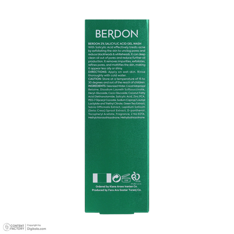 در ترکیبات این محصول 2 درصد سالیسیلیک اسید، عصاره جوانه شاهی، عصاره مریم گلی و عصاره چای سبز وجود دارد.