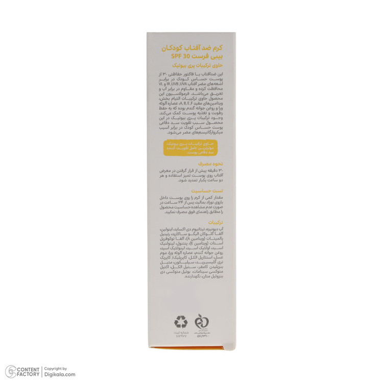 کرم ضد آفتاب کودکان بیبی فرست مدل SPF30 حجم 50 میلی لیتر