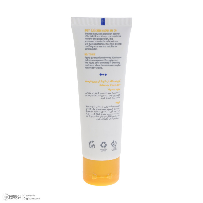 کرم ضد آفتاب کودکان بیبی فرست مدل SPF30 حجم 50 میلی لیتر