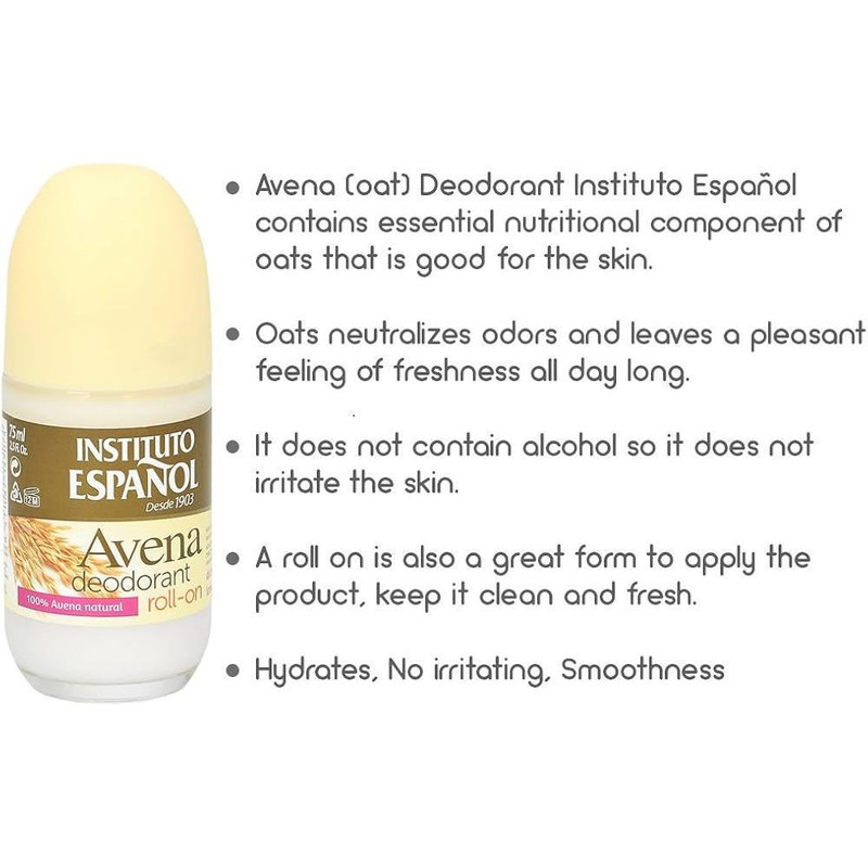 دئودورانت انستیتو اسپانول مدل جو دوسر حاوی اجزای اصلی مغذی جو دوسر بوده که بوی بد را خنثی می کند و احساس طراوت دلپذیری را در طول روز ایجاد می کند. این محصول یک نرم کننده قوی است، همچنین ایده آل برای انواع پوست می باشد.بجهت عدم وجود الکل در ساختار این دئودرانت پوست را تحریک نمی کند و هیدراتاسون قوی پوست محسوب می شودهمچتنین بسته بندی جدید این کالا توسط کمپانی انستیتو اسپانول بصورت اورجینال و طبق تصویر تولید می گردد..