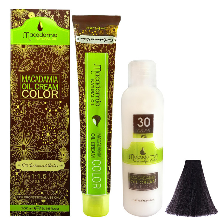 رنگ مو ماکادامیا کد VB حجم 100 میلی لیتر رنگ مشکی بنفش به همراه اکسیدان ماکادامیا مدل 30vol نه درصدی حجم 150 میلی لیتر