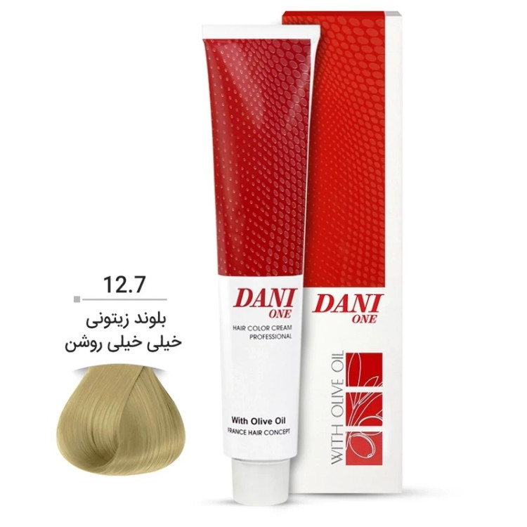 رنگ مو دنی وان شماره 12.7 حجم 100 میلی لیتر رنگ بلوند زیتونی خیلی خیلی روشن