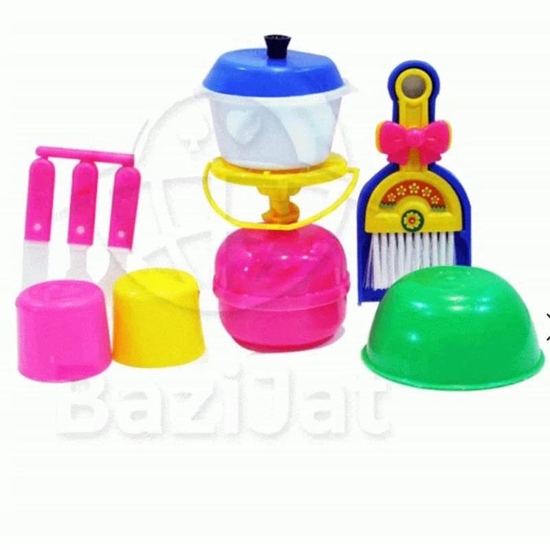 مخصوص دختر خانم ها جهت خاله بازی دارای جارو و خاک انداز اسباب بازی همچنین قابلمه و چنگال های آشپز خانه به همراه سبد و گاز پیک نیکی زیبا