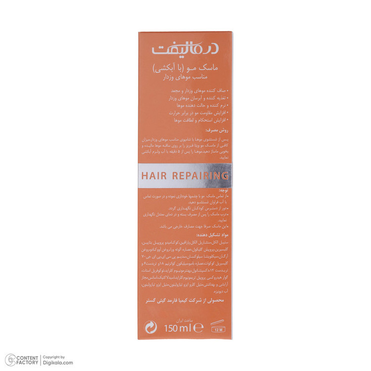 ماسک مو درمالیفت مدل VITA-FRIZZ مناسب برای موهای وزدار حجم 150 میلی لیتر