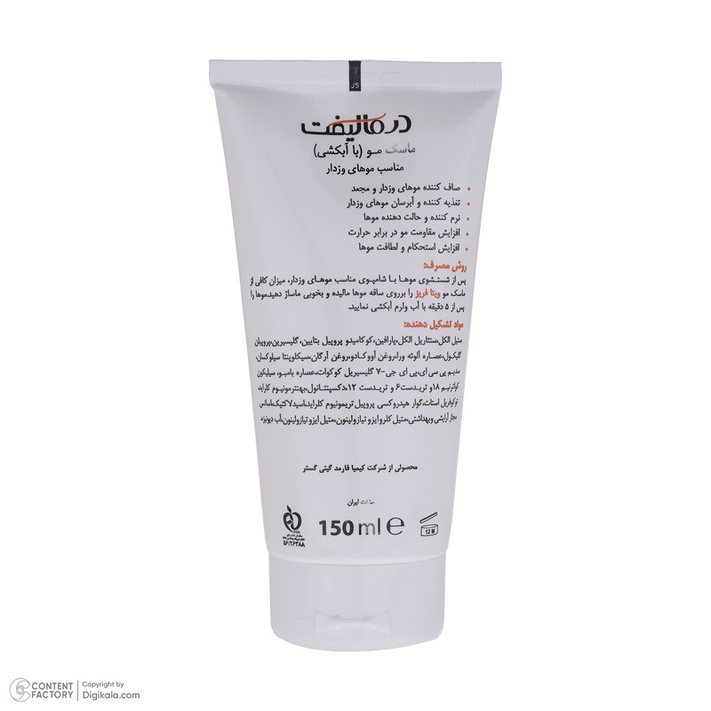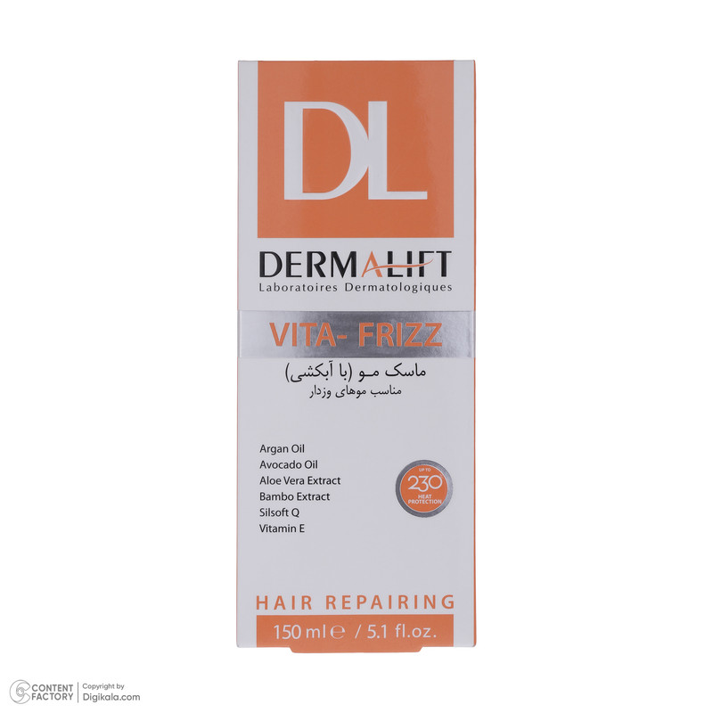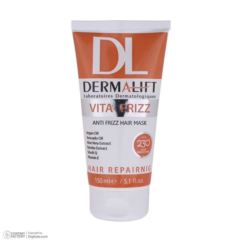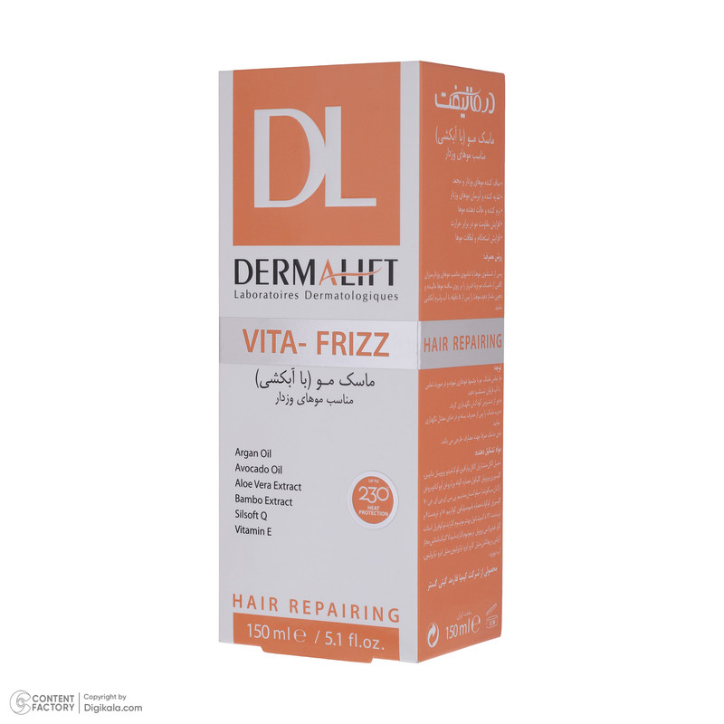 ماسک مو درمالیفت مدل VITA-FRIZZ مناسب برای موهای وزدار حجم 150 میلی لیتر