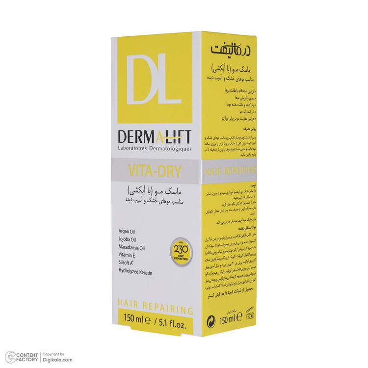 ماسک مو درمالیفت مدل VITA-DRY مناسب برای موهای خشک و آسیب دیده حجم 150 میلی لیتر