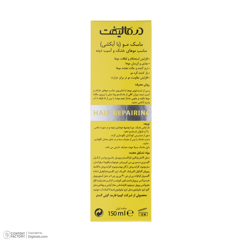 ماسک مو درمالیفت مدل VITA-DRY مناسب برای موهای خشک و آسیب دیده حجم 150 میلی لیتر