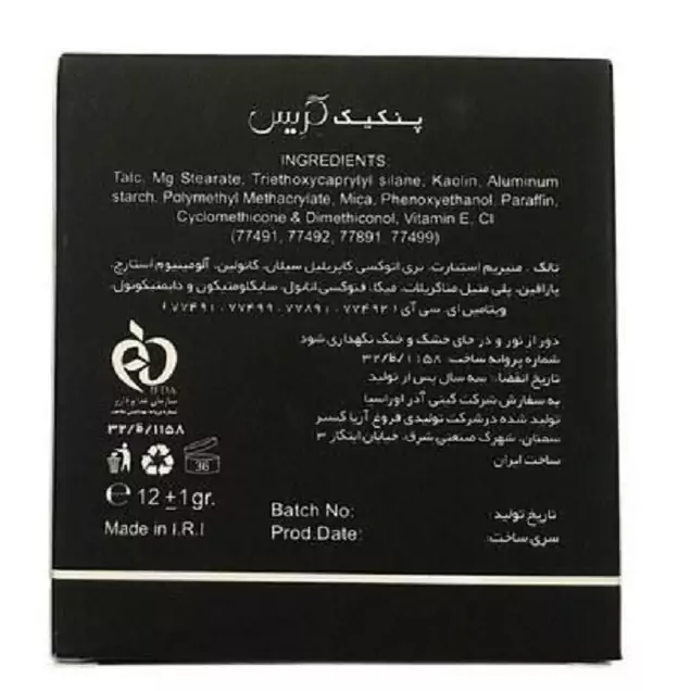 گریس یک برند ایرانی است که فعالیت اصلی آن بر تولید لوازم آرایشی و بهداشتی تمرکز دارد. محصولات گریس تنوع قابل قبولی دارند و در لیست آنها میتوان کالاهایی مانند رژ لب، کرم پودر، لنز چشم، لاک ناخن، رژگونه و پنکیک را مشاهده کرد. این پنکیک فاقد پارابن بوده و بافت ابریشمی و سبک دارد. تمام محصولات گریس از جمله پنکیک آن تحت نظارت سازمان غذا و دارو تولید و عرضه میشوند.دارای 8رنگ ،با پوشش دهی کاملا یک نواخت،مات وطبیعی ست دارای بافت بسیار نرم ومخملی و مغذی و مرطوب کننده پوست ست این پنکیک ابرسان وجوان کننده پوست بوده وبرای پوست های حساس مشکلی ایجاد نمی کند.این محصول با SPF8از پوست شمادربرابر اشعه مضرUVAوUVBمحافظت میکند. فرمولاسیون این پنکیک غنی شده از ویتامین EوC و I (ای و سی و آی) بوده که سبب لطافت،نرمی وجوانسازی پوست می شود.