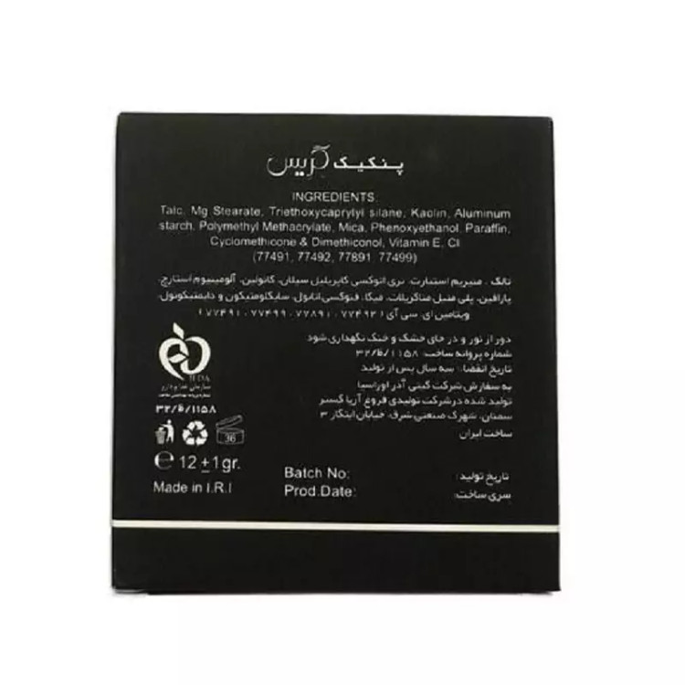 گریس یک برند ایرانی است که فعالیت اصلی آن بر تولید لوازم آرایشی و بهداشتی تمرکز دارد. محصولات گریس تنوع قابل قبولی دارند و در لیست آنها میتوان کالاهایی مانند رژ لب، کرم پودر، لنز چشم، لاک ناخن، رژگونه و پنکیک را مشاهده کرد. این پنکیک فاقد پارابن بوده و بافت ابریشمی و سبک دارد. تمام محصولات گریس از جمله پنکیک آن تحت نظارت سازمان غذا و دارو تولید و عرضه میشوند.دارای 8رنگ ،با پوشش دهی کاملا یک نواخت،مات وطبیعی ست دارای بافت بسیار نرم ومخملی و مغذی و مرطوب کننده پوست ست این پنکیک ابرسان وجوان کننده پوست بوده وبرای پوست های حساس مشکلی ایجاد نمی کند.این محصول با SPF8از پوست شمادربرابر اشعه مضرUVAوUVBمحافظت میکند. فرمولاسیون این پنکیک غنی شده از ویتامین EوC و I (ای و سی و آی) بوده که سبب لطافت،نرمی وجوانسازی پوست می شود.
