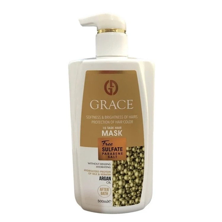سایر ویژگی های ماسک بیرون از حمام گریس مدل آرگان: ترمیم کننده ضد موخوره رطوبت رسان تقویت کننده مو خشک و آسیب دیده نرم کننده حفظ حجم و حالت مو بدون محدودیت سن مناسب خانم ها و آقایان حجم 500 میل