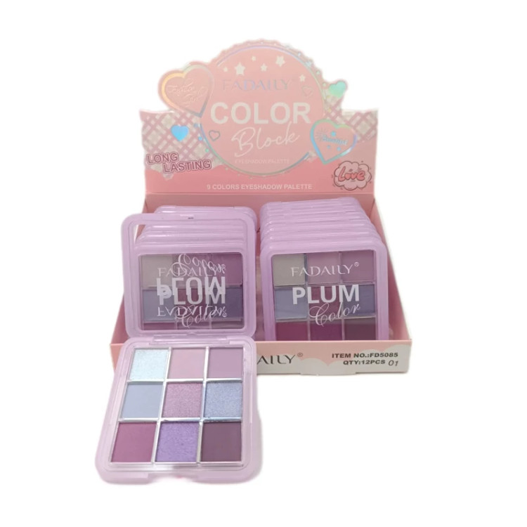 پالت سایه رنگ بنفش برند فادالی | FADAILY دارای 9 رنگ و اکلیل بالاست، رنگ های روشن تا رنگ های تیره و دودی و انواع رنگ بندی ها را شامل می شود.