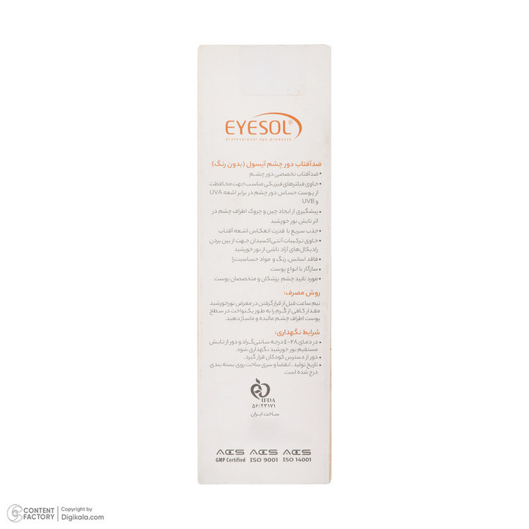 ضد آفتاب دور چشم آیسول دارای خاصیت آنتی اکسیدان/ فاقد اسانس و مواد حساسیت زا