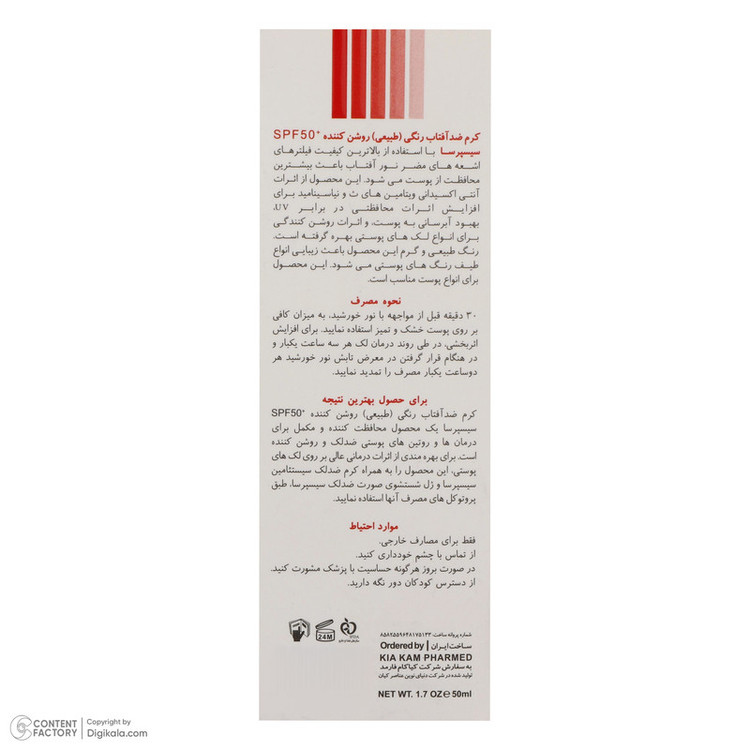 کرم ضدآفتاب رنگی سیسپرسا SPF50 مدل power bright NT ‌مناسب انواع پوست، حجم 50 میلی‌لیتر