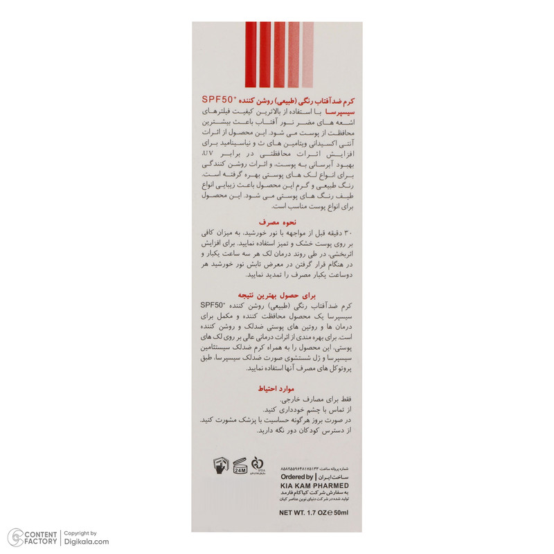 کرم ضدآفتاب رنگی سیسپرسا SPF50 مدل power bright NT ‌مناسب انواع پوست، حجم 50 میلی‌لیتر