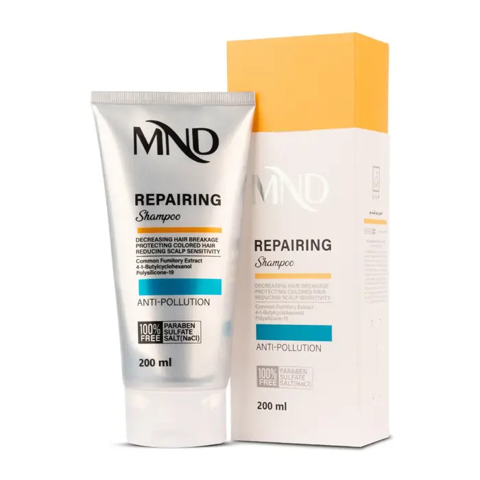ترکیبات موجود در رنگ مو باعث میشود تا کوتیکولهای ساقه مو از هم فاصله بگیرند تا رنگ مو اجازه یابد به لایههای مو نفوذ کرده و باعث رنگ گرفتن مو شود. اما این فرآیند و یا فرآیند دِکلره کردن مو، باعث آسیب شدید ساقه مو شده و میتواند باعث ایجاد حساسیت و التهاب در کف سر شود. بنابراین استفاده از یک شامپوی ملایم ترمیم کننده که التهاب کف سر را هم کنترل کند برای افراد دارای موی رنگ شده، اهمیت زیادی دارد. شامپو ترمیم کننده مو و پوست سر MND یک گزینه مناسب برای این افراد بوده و با داشتن ترکیبات شوینده ملایم، باعث رنگپریدگی ساقه موها نمیشود. این شامپو حاوی عصاره شاهتره است که برای التیام کف سر بعد از فرآیند دِکلره یا رنگ کردن مو، مناسب بوده و به همراه 4-تری-بوتیل سیکلوهگزانول خارش و التهاب کف سر را کاهش میدهد. این محصول فیتواستریل-اکتیل دودسیل لائوریل گلوتامات را در خود دارد که ترمیم کننده بسیار مناسب ساقه مو و کف سر بوده و کشسانی مو را افزایش داده و از شکننده شدن ساقه مو ممانعت میکند. البته برای بهبود شانهپذیری و ترمیم ساقه موها از دایمتیکون پروپیل پیجی-بتائین هم کمک گرفته شده که علاوه بر نرم کردن سطح مو از کاهش رنگ ساقه مو هم جلوگیری میکند. البته نقش محافظتی اصلی بر عهده پلی سیلیکون-19 است که مانع از شکننده شدن مو در اثر تابش اشعه ماورای بنفش یا کاهش پیدا کردن رنگ مو در اثر این تابش میشود و به خوبی رنگ مو را حفظ میکند. برای حفظ رطوبت مو و کف سر هم از مخلوط زایلیتول و گلیسرین کمک گرفته شده که نتایج خوبی در تامین و حفظ رطوبت از خود نشان دادهاند. باتوجه به اینکه آلودگی پیرامون انسان نیز در ملتهب شدن کف سر یا آسیب دیدن ساقه مو اثر شگرفی دارد از عصاره ریشه سرخارگل نیز در این محصول استفاده شده که خواص آنتیاکسیدانی آن به سلامت مو و کف سر کمک فراوانی میکند.