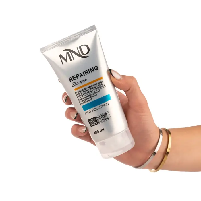 ترکیبات موجود در رنگ مو باعث میشود تا کوتیکولهای ساقه مو از هم فاصله بگیرند تا رنگ مو اجازه یابد به لایههای مو نفوذ کرده و باعث رنگ گرفتن مو شود. اما این فرآیند و یا فرآیند دِکلره کردن مو، باعث آسیب شدید ساقه مو شده و میتواند باعث ایجاد حساسیت و التهاب در کف سر شود. بنابراین استفاده از یک شامپوی ملایم ترمیم کننده که التهاب کف سر را هم کنترل کند برای افراد دارای موی رنگ شده، اهمیت زیادی دارد. شامپو ترمیم کننده مو و پوست سر MND یک گزینه مناسب برای این افراد بوده و با داشتن ترکیبات شوینده ملایم، باعث رنگپریدگی ساقه موها نمیشود. این شامپو حاوی عصاره شاهتره است که برای التیام کف سر بعد از فرآیند دِکلره یا رنگ کردن مو، مناسب بوده و به همراه 4-تری-بوتیل سیکلوهگزانول خارش و التهاب کف سر را کاهش میدهد. این محصول فیتواستریل-اکتیل دودسیل لائوریل گلوتامات را در خود دارد که ترمیم کننده بسیار مناسب ساقه مو و کف سر بوده و کشسانی مو را افزایش داده و از شکننده شدن ساقه مو ممانعت میکند. البته برای بهبود شانهپذیری و ترمیم ساقه موها از دایمتیکون پروپیل پیجی-بتائین هم کمک گرفته شده که علاوه بر نرم کردن سطح مو از کاهش رنگ ساقه مو هم جلوگیری میکند. البته نقش محافظتی اصلی بر عهده پلی سیلیکون-19 است که مانع از شکننده شدن مو در اثر تابش اشعه ماورای بنفش یا کاهش پیدا کردن رنگ مو در اثر این تابش میشود و به خوبی رنگ مو را حفظ میکند. برای حفظ رطوبت مو و کف سر هم از مخلوط زایلیتول و گلیسرین کمک گرفته شده که نتایج خوبی در تامین و حفظ رطوبت از خود نشان دادهاند. باتوجه به اینکه آلودگی پیرامون انسان نیز در ملتهب شدن کف سر یا آسیب دیدن ساقه مو اثر شگرفی دارد از عصاره ریشه سرخارگل نیز در این محصول استفاده شده که خواص آنتیاکسیدانی آن به سلامت مو و کف سر کمک فراوانی میکند.
