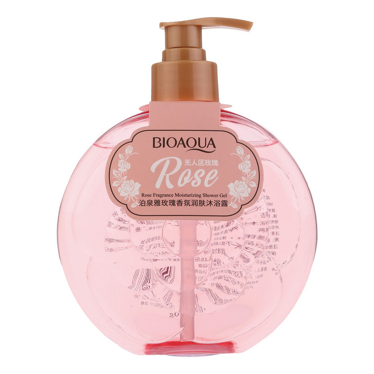 شامپو بدن بی آکوا مدل رطوبت رسان با رایحه گل رز مناسب برای انواع پوست وزن 500 گرم