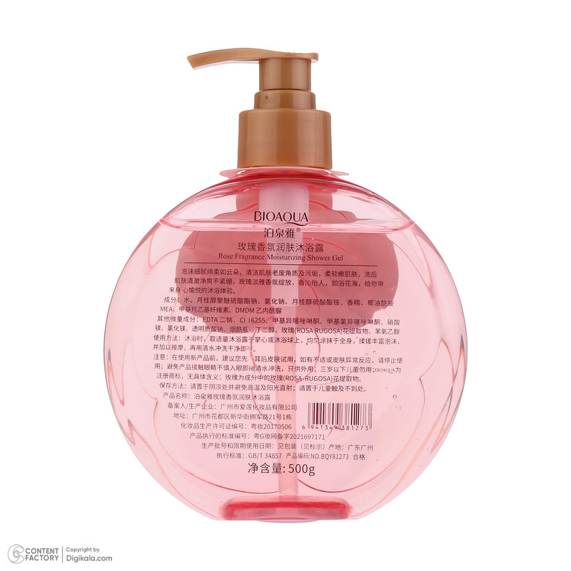 شامپو بدن بی آکوا مدل رطوبت رسان با رایحه گل رز مناسب برای انواع پوست وزن 500 گرم