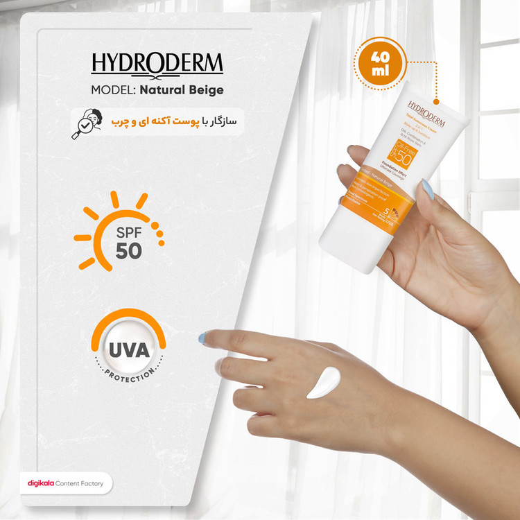 کرم ضدآفتاب هیدرودرم مدل Natural Beige، حجم 40 میلی‌لیتر