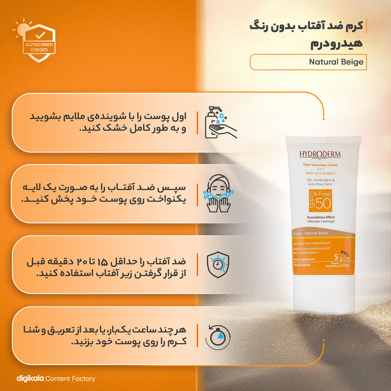 کرم ضدآفتاب هیدرودرم مدل Natural Beige، حجم 40 میلی‌لیتر