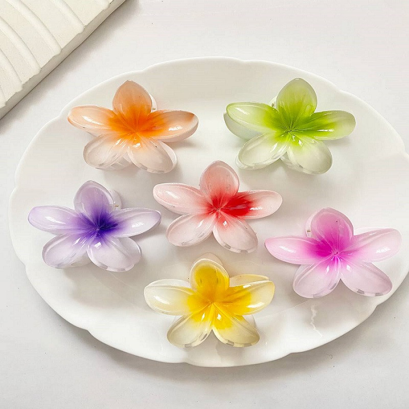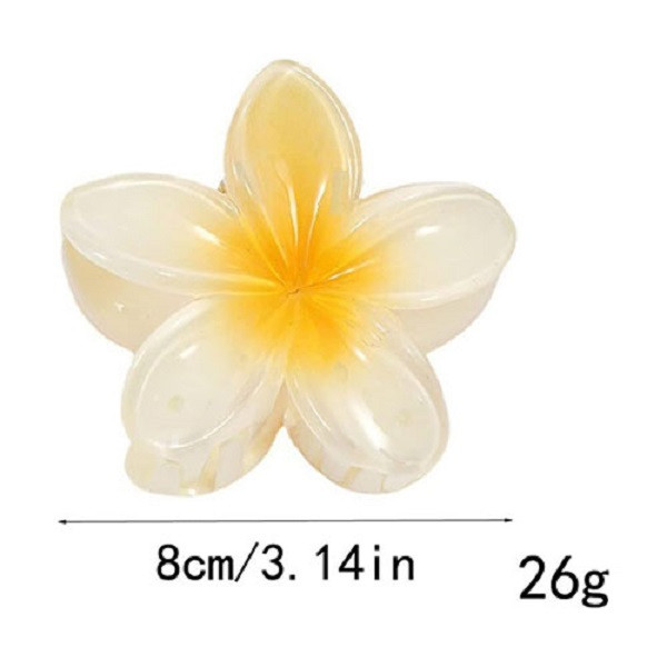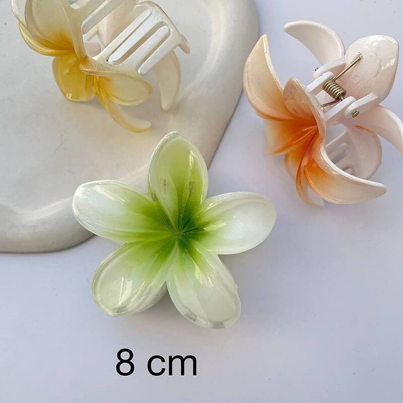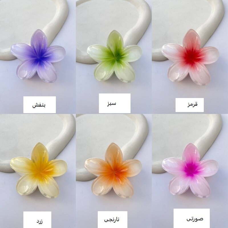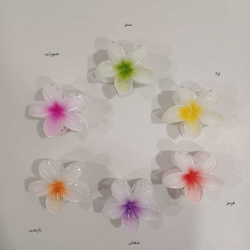 کلیپس پلومریا سایز بزرگ هشت سانتی متری پر طرفدار که با رنگ های شاد و متنوع وجود دارد.قابل ذکر است که عموما رنگ کالا به این صورت است که مرکز گل پررنگ بوده و بدنه اصلی سفید و یا کم رنگ همان رنگ مرکز می باشد.