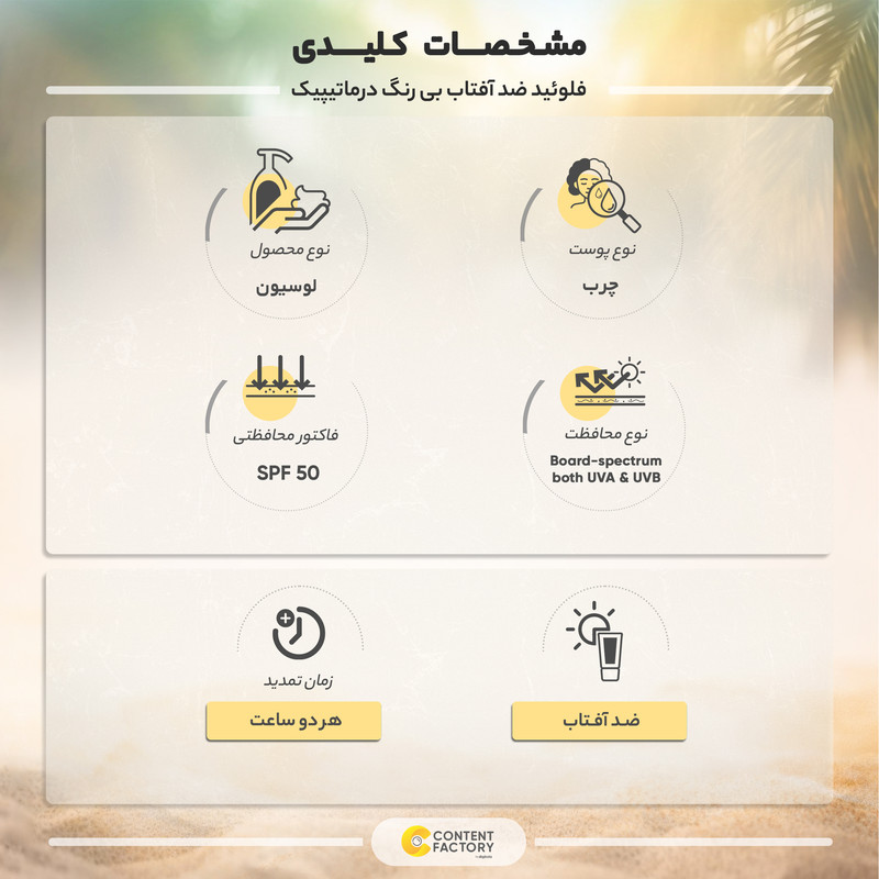 ویژگیهای ضدآفتاب : ضد آب , محافظت کننده در برابر اشعه UVA , محافظت کننده در برابر اشعه UVB