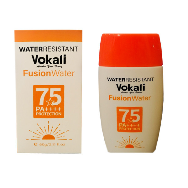 فلوئید ضد آفتاب بدون رنگ وکالی SPF 75 مدل فیوژن واتر محافظ UVA ،UVB و PA+++، ضد حساسیت، ضد چروک و ضد پیری، مناسب انواع پوست‌ وزن 60 گرم