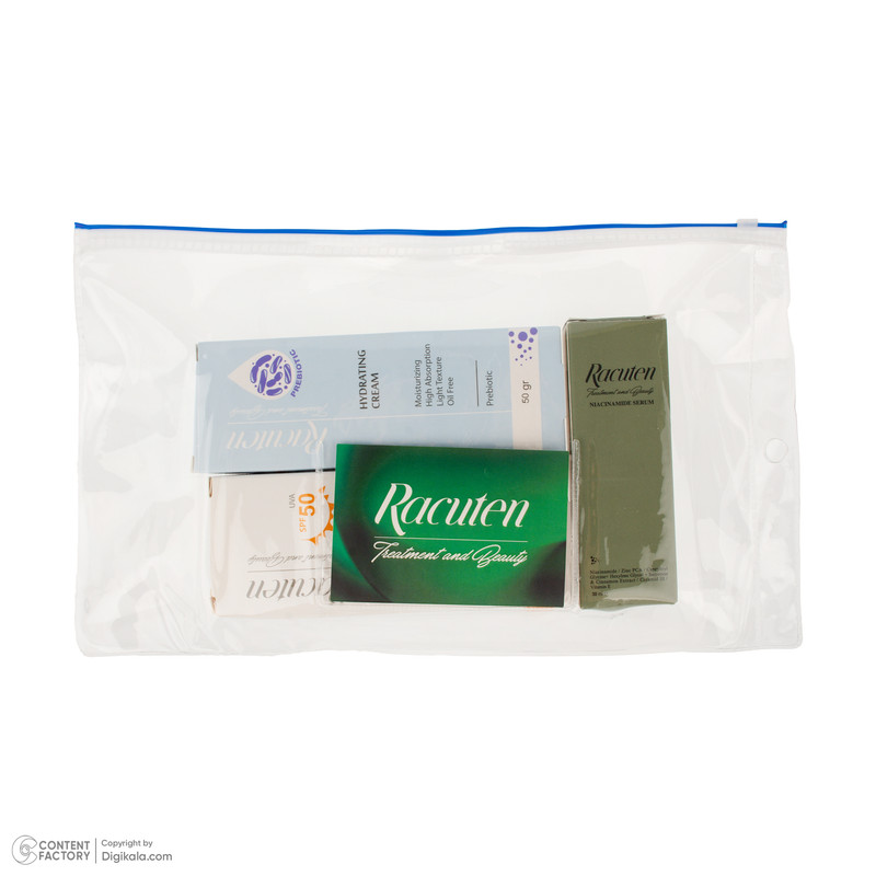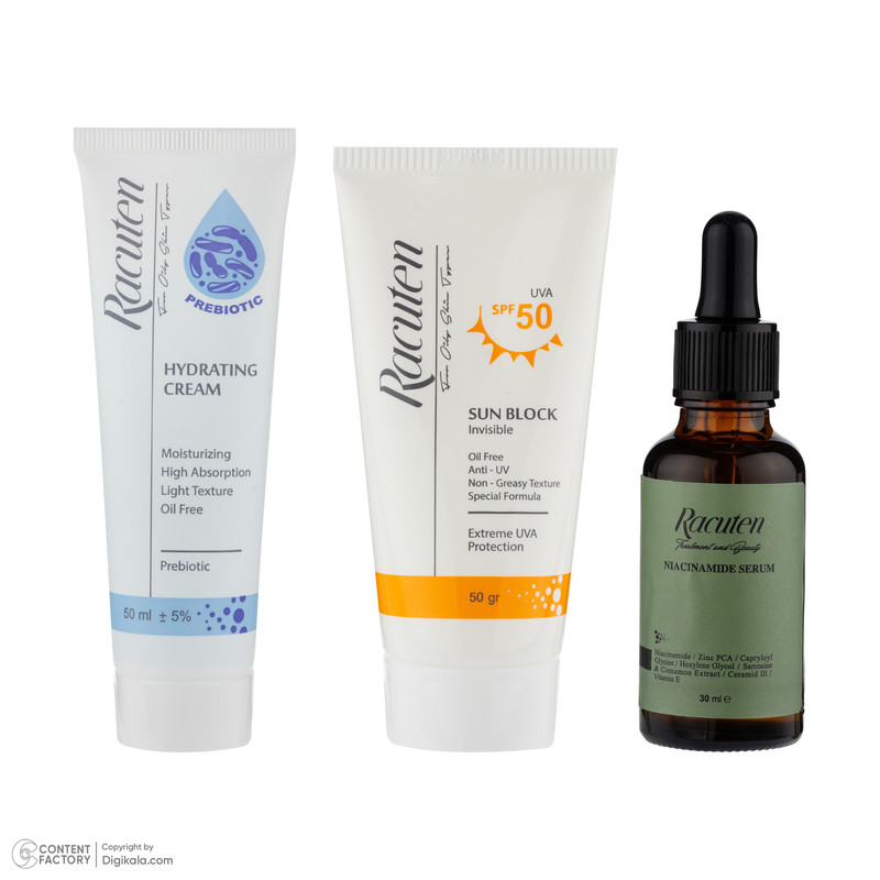 کرم آبرسان حجم 50 میلی لیتر، سرم نیاسینامید حجم 30 میلی لیتر و کرم ضد آفتاب حجم 50 میلی لیتر