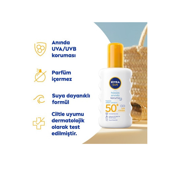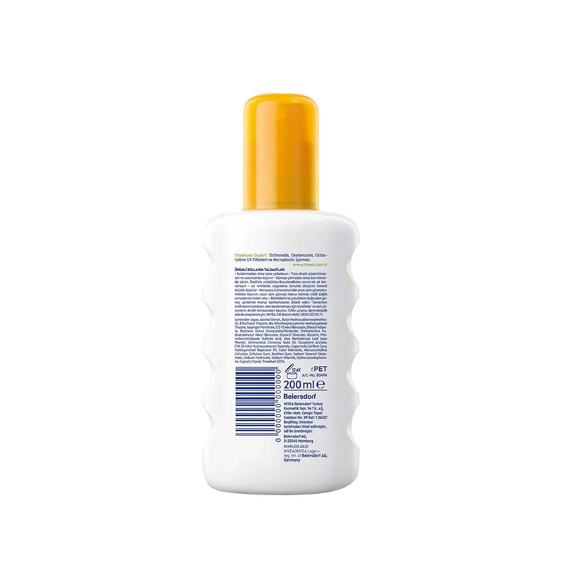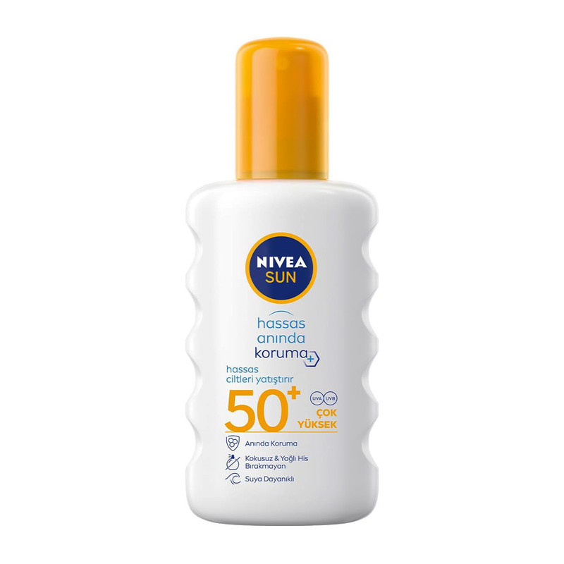 اسپری ضد آفتاب NIVEA 50+ SPF برای پوست های حساس، با روغن های طبیعی و فرمول توسعه یافته برای پوست های حساس، توسط NIVEA، متخصص 85 ساله در محافظت از آفتاب. با ساختار سبک و بی بو خود، بدون ایجاد وزن بر روی پوست، از پوست شما محافظت می کند. با روغن جوجوبا و عصاره طبیعی آلوئه ورا در محتوای آن، مراقبت بیشتری برای پوست های حساس فراهم می کند. با فاکتور محافظت از آفتاب SPF 50+ و فیلتر UVA/UVB، خطر تحریکات پوستی مرتبط با نور خورشید را کاهش می دهد. با فرمول ضد آب خود، به محافظت از سد پوستی در تمام طول روز ادامه می دهد.