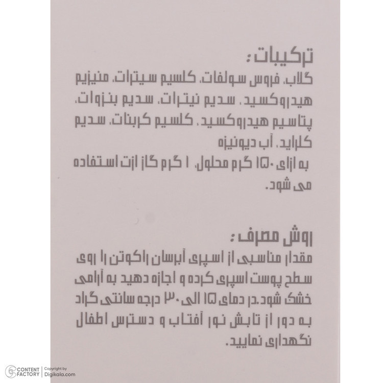 صورت خود را با شوینده مناسب بشویید و خشک کنید، اسپری را از فاصله 20-30 سانتیمتری به صورت خود اسپری کنید و اجازه دهید اسپری جذب پوست شود.