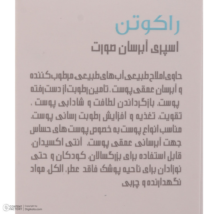 اسپری آبرسان صورت راکوتن مدل Hydrating مناسب برای انواع پوست وزن 200 گرم